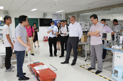 王玉華副書記陪同客人參觀了我校機械工程學院機器人實驗室、3D打印研究中心和激光加工技術訓練室等,施乾平董事長對與機械工程學院在上述方面進行多方面合作表達了濃厚意愿。