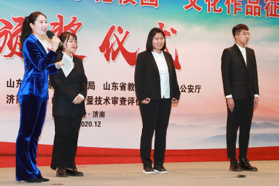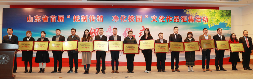 12月22日下午,山東省首屆“抵制傳銷 凈化校園”文化作品征集活動(dòng)頒獎(jiǎng)儀式在我校舉辦。山東省市場監(jiān)督管理局一級巡視員桂敦山、山東省教育廳副廳長戴龍成、山東省公安廳經(jīng)濟(jì)犯罪偵查總隊(duì)總隊(duì)長徐磊、學(xué)校黨委副書記王玉華、副校長楊景波、山東省教育廳學(xué)校安全管理處處長魏治法、山東省打擊傳銷聯(lián)席會(huì)議辦公室主任李冠博、山東省公安廳經(jīng)濟(jì)犯罪偵查總隊(duì)一級警長劉秀子、濟(jì)南市市中公安分局七賢派出所副所長戴兵出席頒獎(jiǎng)儀式。學(xué)校辦公室、黨委宣傳部、黨委學(xué)生工作部(處)、黨委保衛(wèi)部 安全管理處、后勤管理與基建處、團(tuán)委等部門主要負(fù)責(zé)人和來自全省30所高校的主創(chuàng)團(tuán)隊(duì)、指導(dǎo)教師、校方代表以及新聞媒體共同參加頒獎(jiǎng)活動(dòng)。