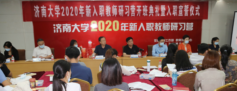 9月25日,濟南大學2020年新入職教師研習營開班典禮暨入職宣誓儀式在第五會議室舉行。校長張士強,副校長王志,黨委教師工作部、人力資源處、教務處、科技處、社科處等部門的負責人,教授代表王焱,87名新入職的青年教...
